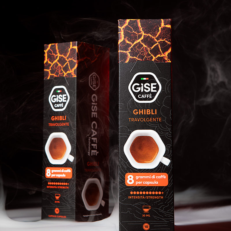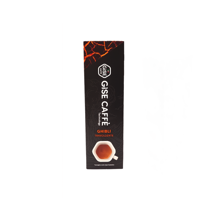 A long and intense roasting process gives our Ghibli blend maximum intensity in terms of crema, body, and aromatic richness. Thanks to the selection of premium Robusta sourced exclusively from Tanzania, our roasting experts are able to enhance a bold flavour profile, featuring notes of Caramel, Cocoa Bean, and Toasted Nuances. Its exceptionally persistent aftertaste will guide you at the most intense moments of the day, delivering a deep and unmistakable tasting experience.
